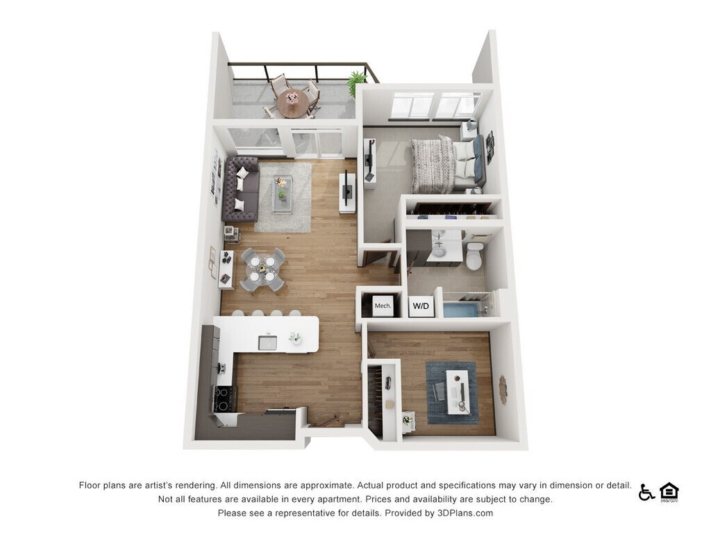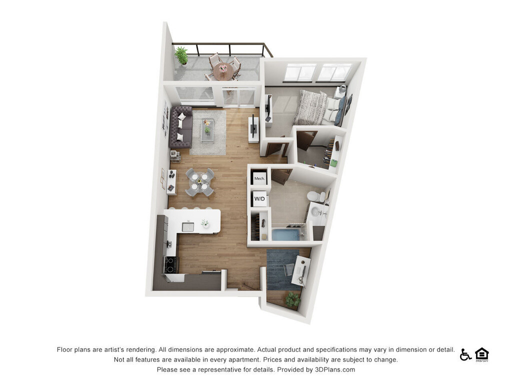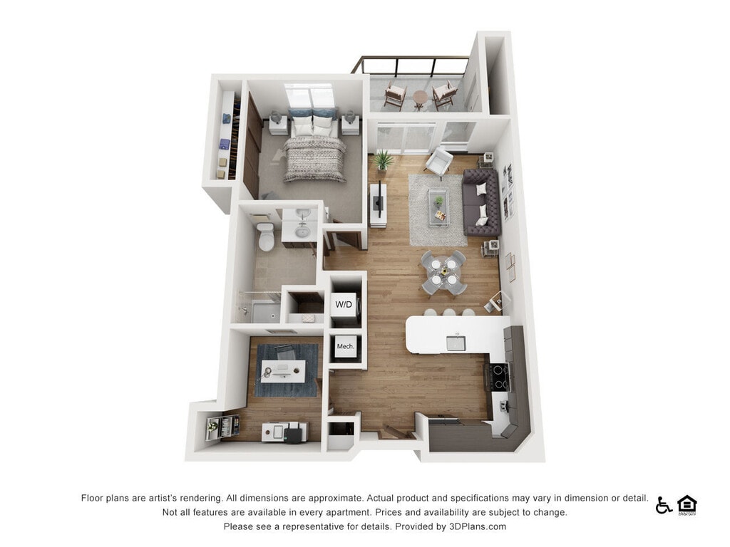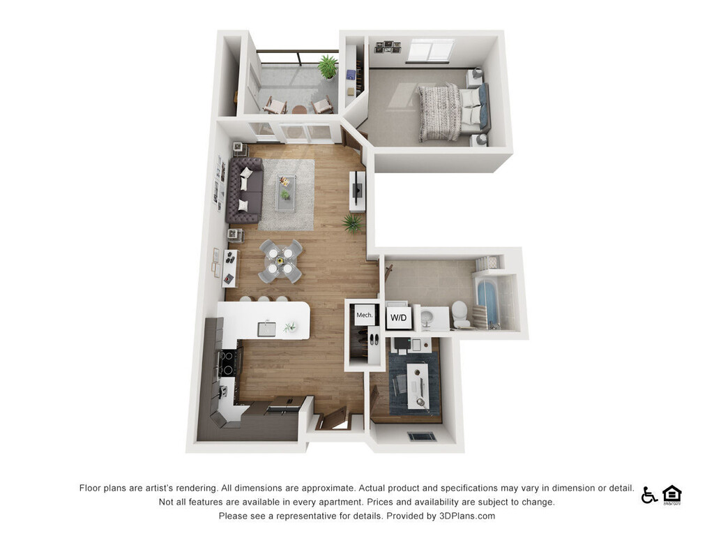 The Sawyer - Plano 1 Los planos de la planta son una interpretación artística. Todas las dimensiones son aproximadas. Los tamaños o el detalle del producto real y sus especificaciones pueden variar. No todas las características están disponibles en todos los hogares para rentar. Los precios y la disponibilidad están sujetos a cambios. El alquiler que se muestra es mensual. Se pueden aplicar ciertos cargos, por ejemplo, entrega de paquetes, recolección de basura, agua, servicios, etc. Depositos varian. Consulta a un representante para conocer detalles.