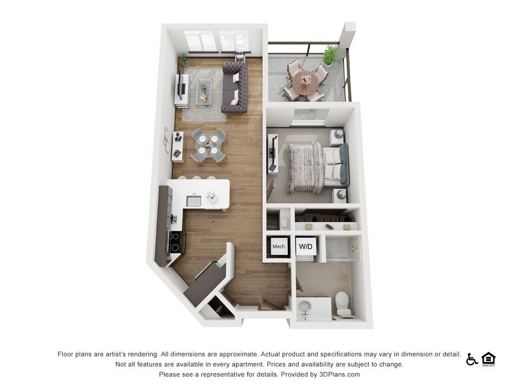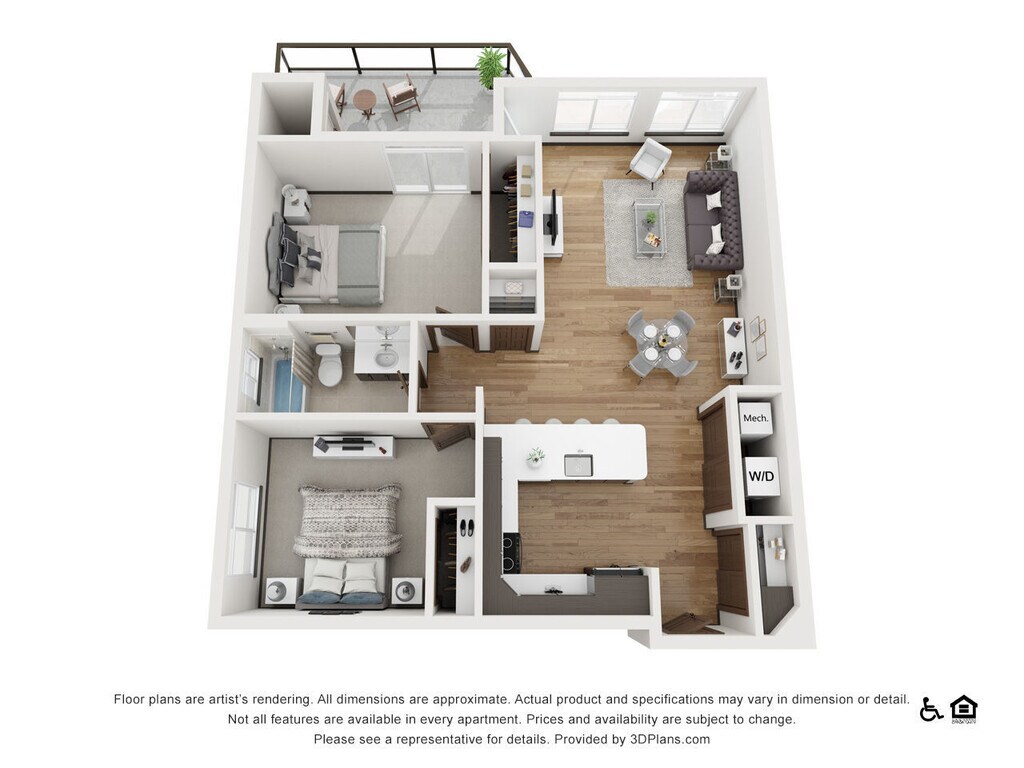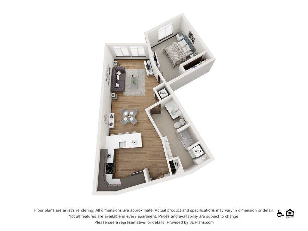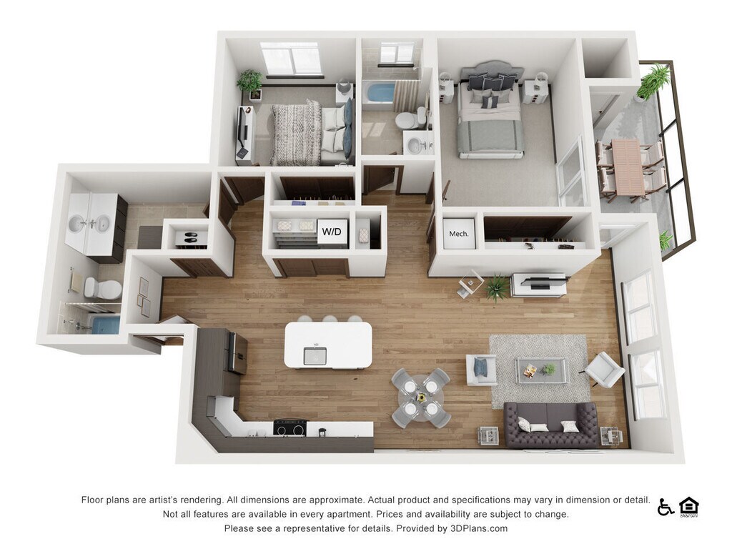 The Sawyer - Plano 1 Los planos de la planta son una interpretación artística. Todas las dimensiones son aproximadas. Los tamaños o el detalle del producto real y sus especificaciones pueden variar. No todas las características están disponibles en todos los hogares para rentar. Los precios y la disponibilidad están sujetos a cambios. El alquiler que se muestra es mensual. Se pueden aplicar ciertos cargos, por ejemplo, entrega de paquetes, recolección de basura, agua, servicios, etc. Depositos varian. Consulta a un representante para conocer detalles.