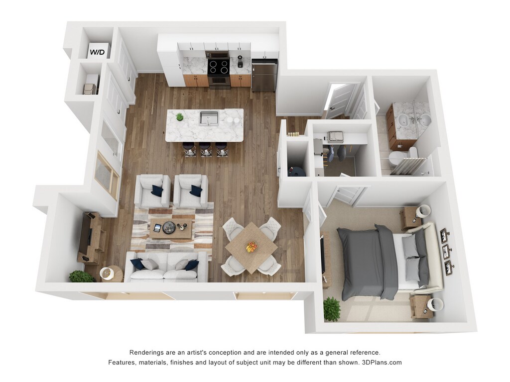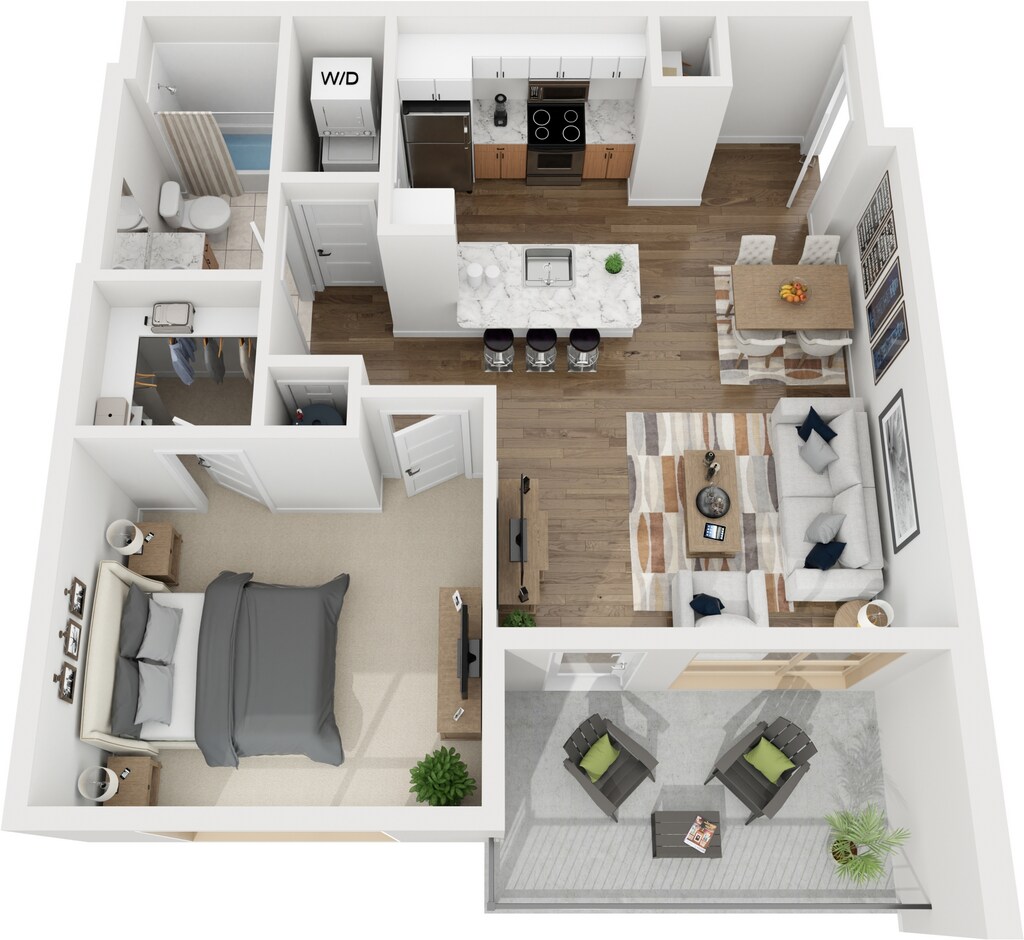 1 Dormitorio, 1 Baño, 690 pies²Disponible AhoraGalería del Modelo