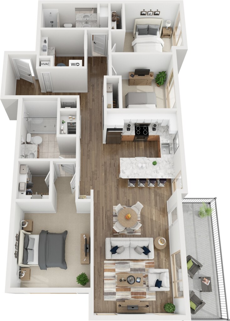 Modelo de apartamento: 1 Bedroom 1 BathDesde $1,6431 Dormitorio, 1 Baño, 708 sq ftDisponible December 6, 2025![]()