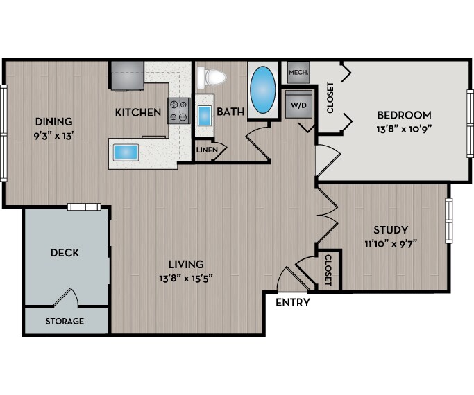 1 Dormitorio, 1 Baño, 954 pies²Disponible January 16, 2026El más grandeEsta opción tiene las unidades más grandes para este modeloGalería del Modelo