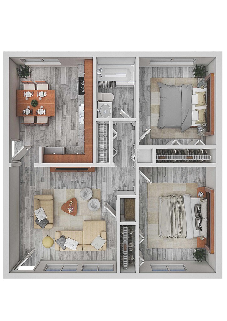Modelo de apartamento: Two Bedroom2 Dormitorios, 1 Baño, 711 sq ftNo DisponibleTwo Bedroom - Plano 1 Two Bedroom - Plano 2