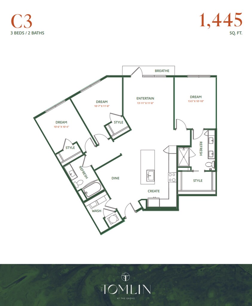 The Tomlin ofrece apartamentos de Estudio a 3 Dormitorios desde $1,549 con 486–1,493 pies cuadrados. Aquí está el precio actual y la disponibilidad: