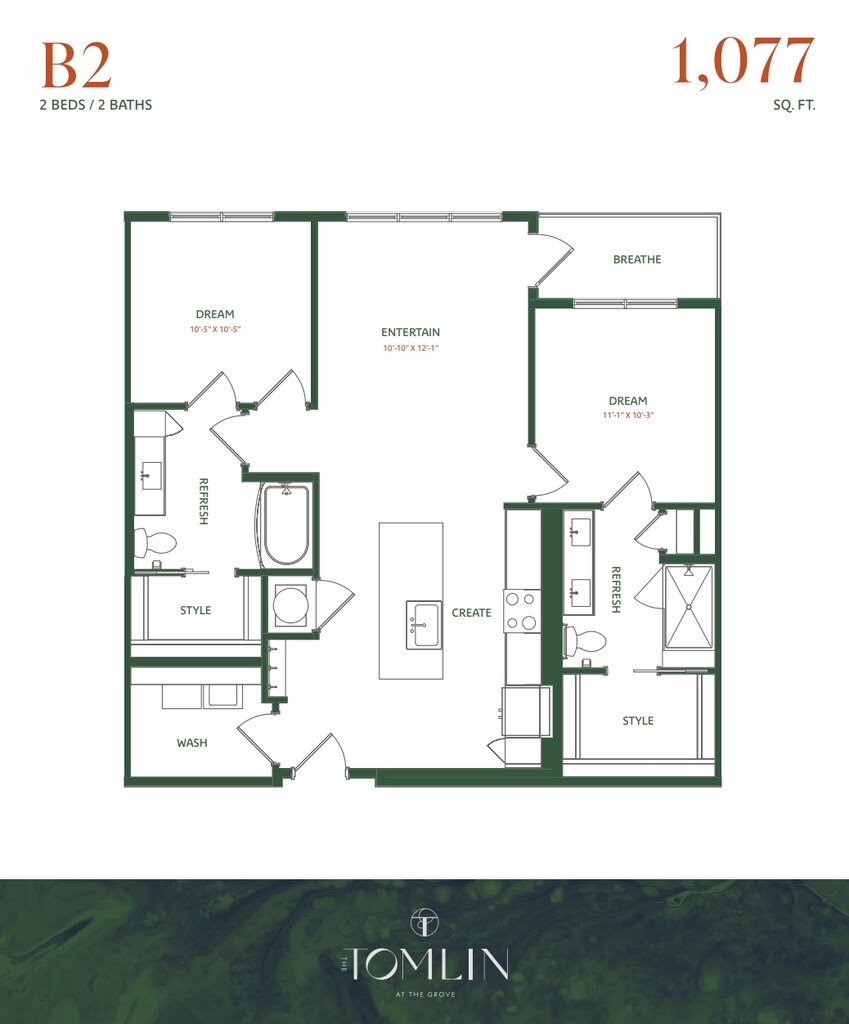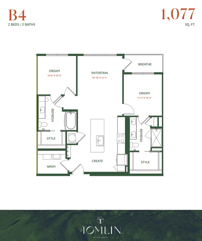 The Tomlin es una bocanada de aire fresco en el pulso del renacer del centro de la ciudad. Con reminiscencias de las mejores vacaciones todo el año, The Tomlin ofrece comodidades estilo centro turístico, apartamentos lujosamente decorados y un nivel de servicio inigualable, en un vibrante centro urbano transitable a pie. Cuando la tranquila comodidad del hogar es lo que deseas, The Tomlin ofrece tranquilidad y sofisticación en espacios. Nuestros amplios apartamentos de una, dos y tres habitaciones son de bajo consumo, y están diseñados para tu comodidad y tranquilidad. Los sofisticados detalles y acabados lujosos (gabinetes de cierre suave, islas de gran tamaño, iluminación personalizada y pisos de roble natural, por nombrar algunos) ponen la perfección al alcance de tu mano. Paisajes frondosos y una gran cantidad de áreas de estar al aire libre, braseros y espacios verdes hacen que sea el lugar perfecto para disfrutar de un poco de tiempo libre o de un encuentro íntimo con amigos. Nuestra piscina climatizada de agua salada y cabañas le brindan a tu base de operaciones un ambiente tranquilo de vacaciones, mientras que nuestro salón social y las áreas comunes ofrecen una gran oportunidad para hacer nuevos amigos y conexiones. Este nivel de lujo, comodidad y conveniencia es nuevo en Snellville y único en The Tomlin. Te invitamos a ver esta maravilla en Main Street, creada solo para ti.