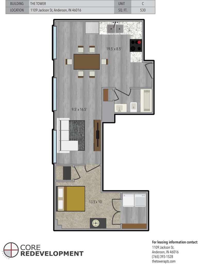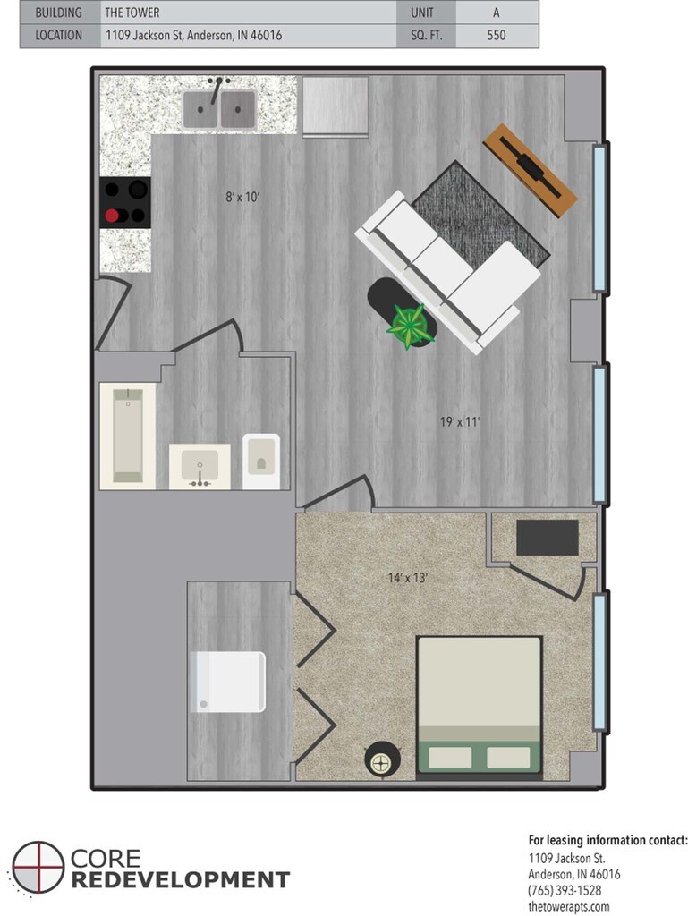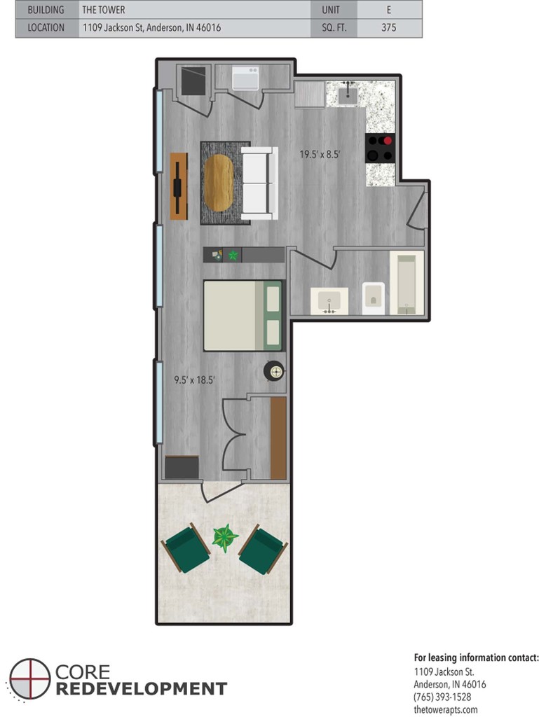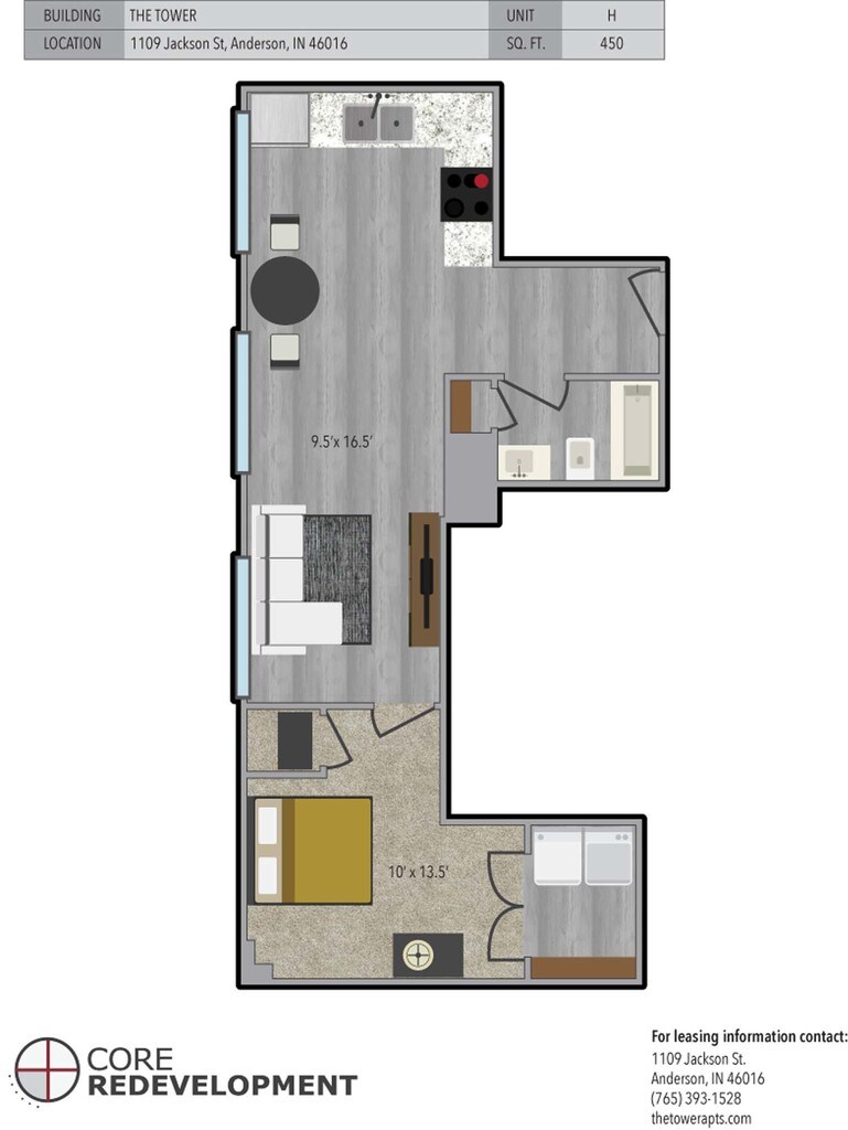 The Tower se encuentra en el código postal 46016 de Anderson, IN.
