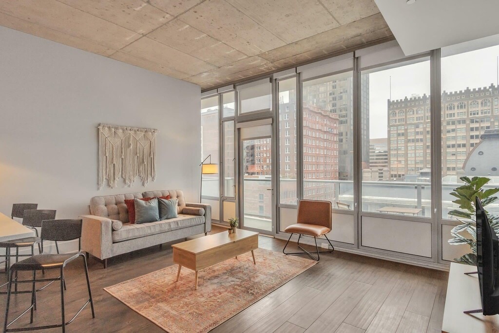 - Ventanas de piso a techo de 10' a 12' en cada hogar