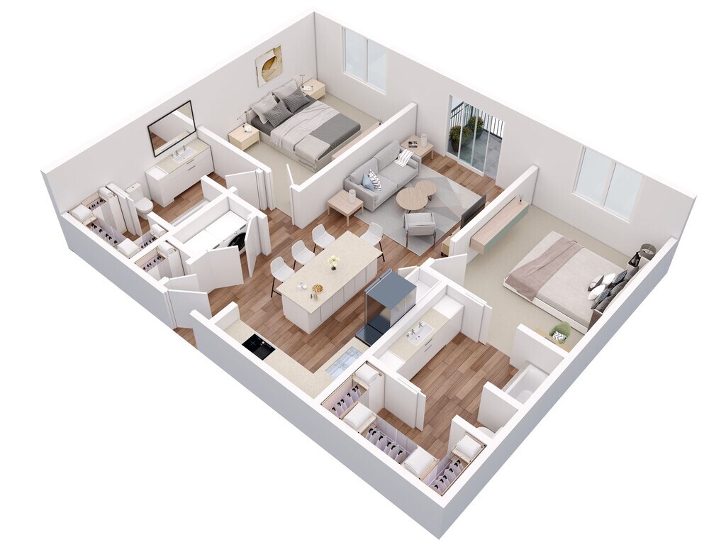 Modelo de apartamento: 2x2$1,5702 Dormitorios, 2 Baños, 968 sq ftDisponible December 20, 2025![]()
