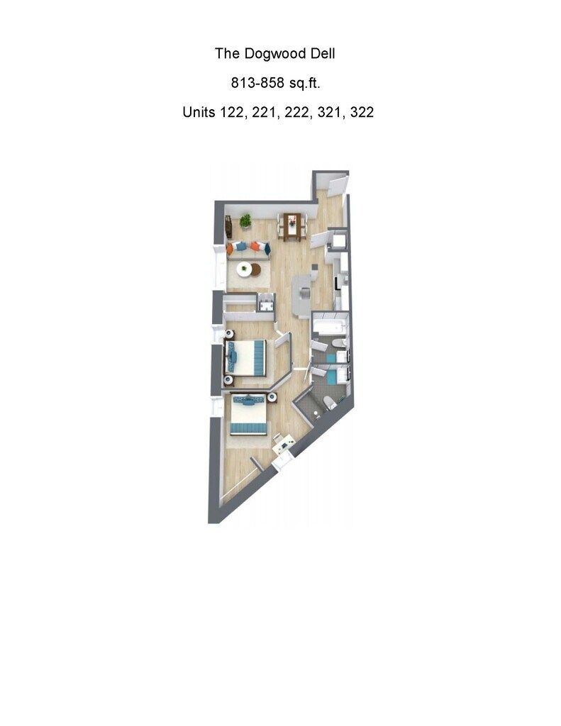 The James River - Plano 1 Unidad de apartamento: 320Modelo de apartamento: The James River$1,5051 Dormitorio, 1 Baño, 698 sq ftDisponible AhoraThe Buttermilk