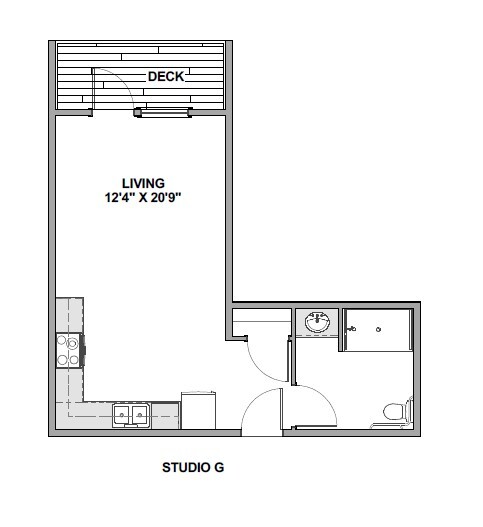 Studio G (ADA) - Plano 1 Unidad de apartamento: 316Modelo de apartamento: Studio G (ADA)$1,250Estudio, 1 Baño, 429 sq ftDisponible AhoraStudio B