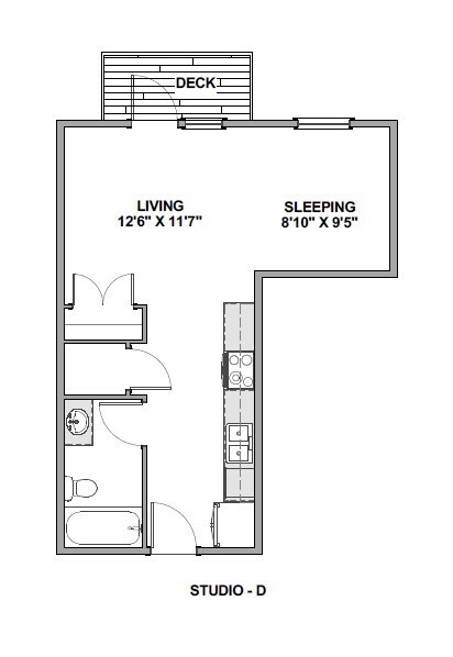 Modelo de apartamento: Studio D$1,625Estudio, 1 Baño, 463 sq ftDisponible AhoraStudio D - Plano 1 1 Dormitorio