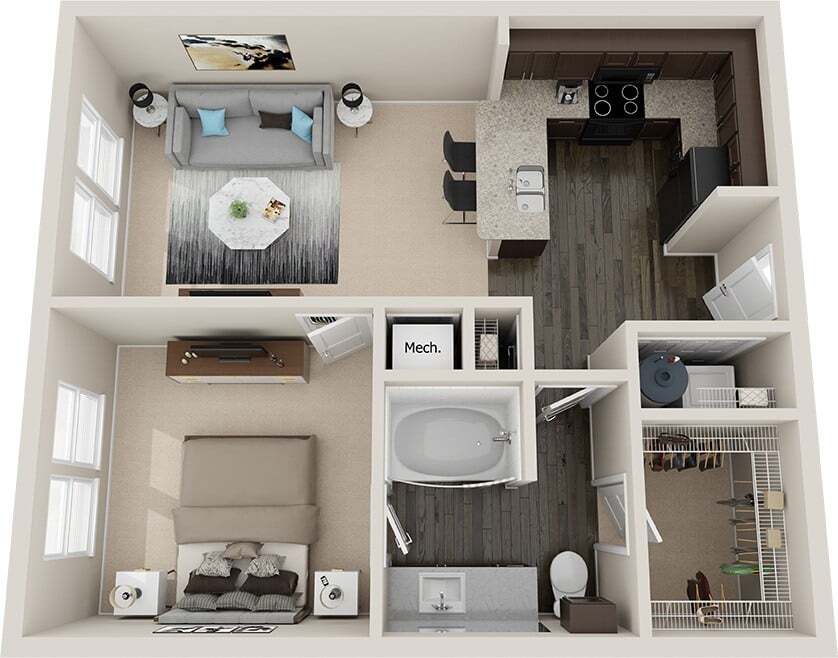 1 Dormitorio, 1 Baño, 755 pies²Disponible AhoraGalería del Modelo