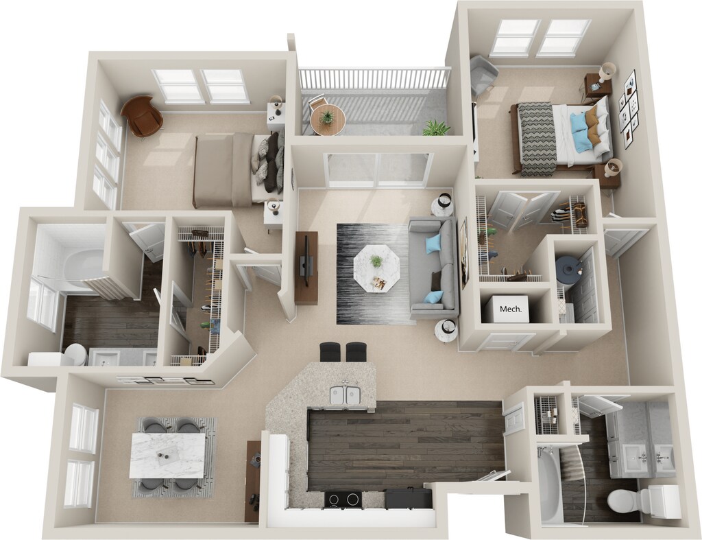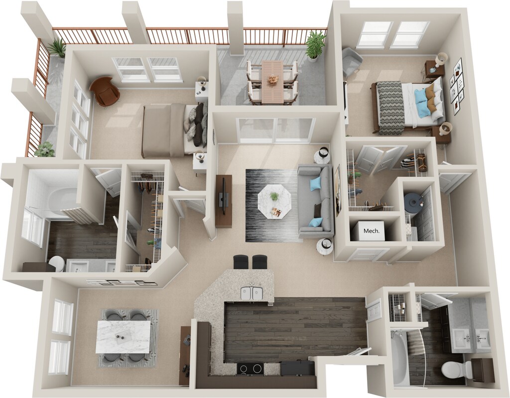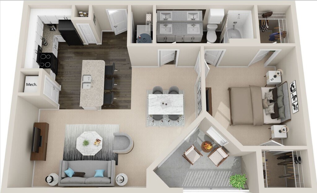 1 Dormitorio, 1 Baño, 863 pies²Disponible AhoraGalería del Modelo
