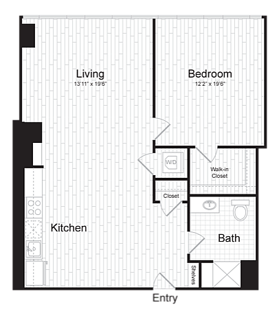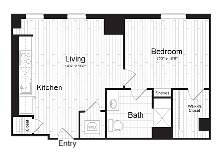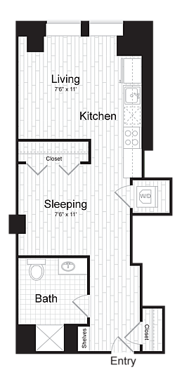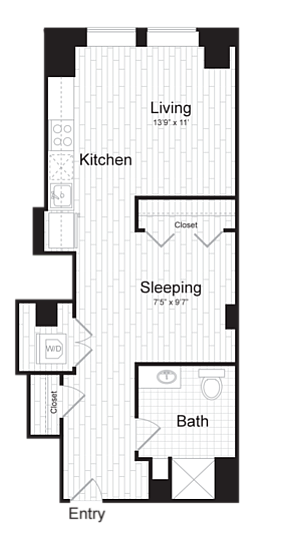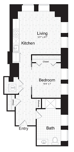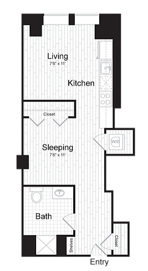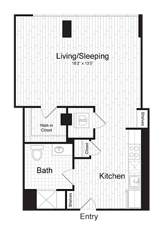 Modelo de apartamento: STUDIO ALlame para PreciosEstudio, 1 Baño, 407 sq ftNo DisponibleLos planos son representaciones artísticas. Todas las dimensiones son aproximadas. El producto y las especificaciones reales pueden variar en tamaño o detalle. No todas las características están disponibles en cada vivienda en alquiler. Por favor, consulta con un representante para obtener más detalles.