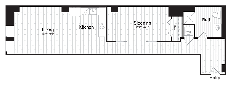 Modelo de apartamento: STUDIO DLlame para PreciosEstudio, 1 Baño, 473 sq ftNo DisponibleLos planos son representaciones artísticas. Todas las dimensiones son aproximadas. El producto y las especificaciones reales pueden variar en tamaño o detalle. No todas las características están disponibles en cada vivienda en alquiler. Por favor, consulta con un representante para obtener más detalles.