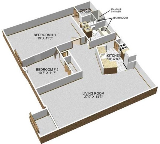 Modelo de apartamento: 2 BED$1,2952 Dormitorios, 2 Baños, 880 sq ftDisponible Ahora![]()