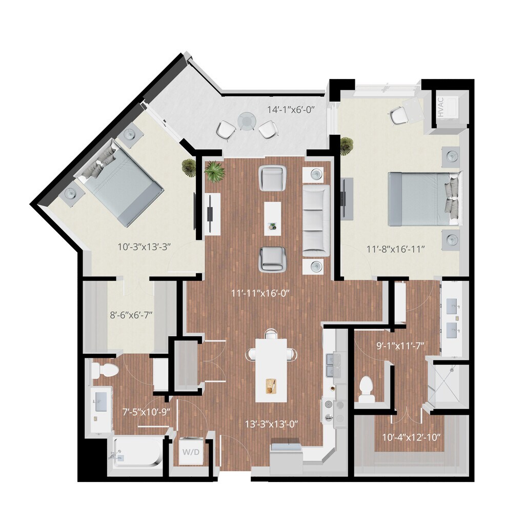 Oxley - Plano 1 Unidad de apartamento: C121Modelo de apartamento: Oxley$1,582Estudio, 1 Baño, 664 sq ftDisponible Ahora![]()