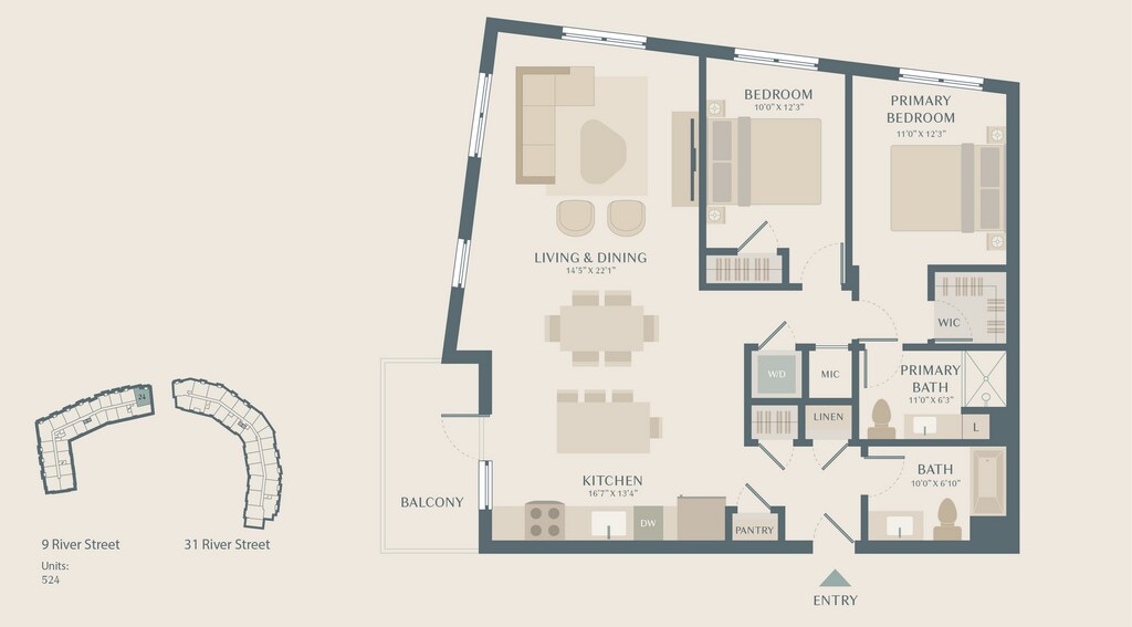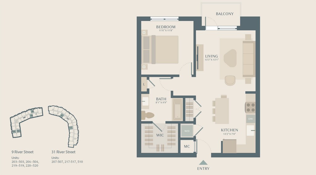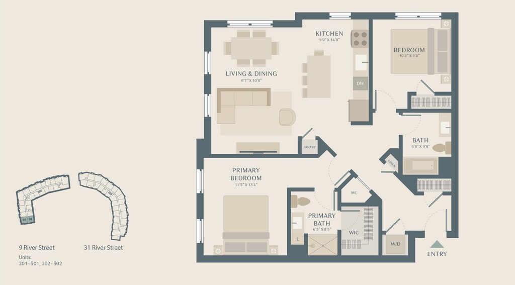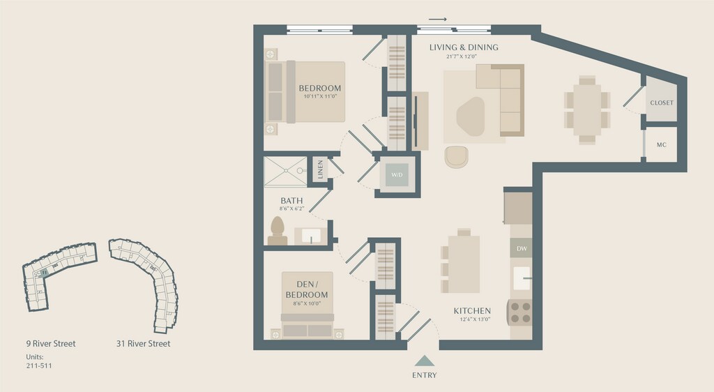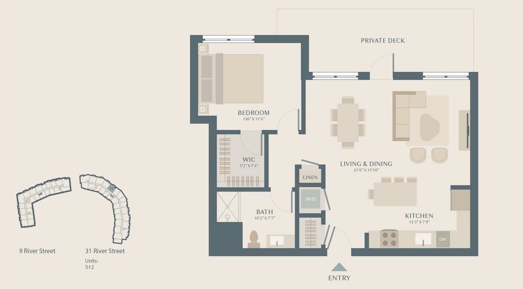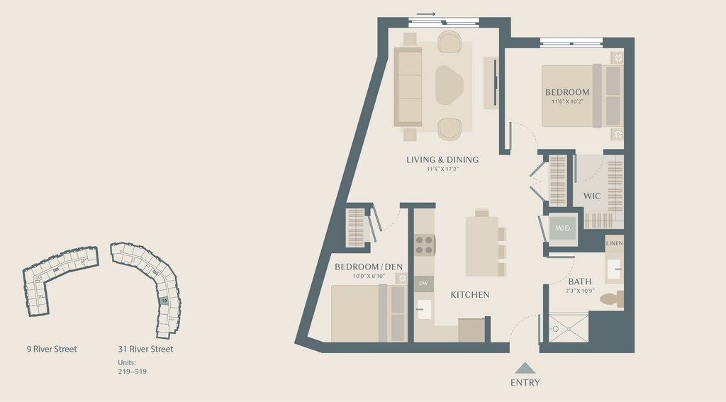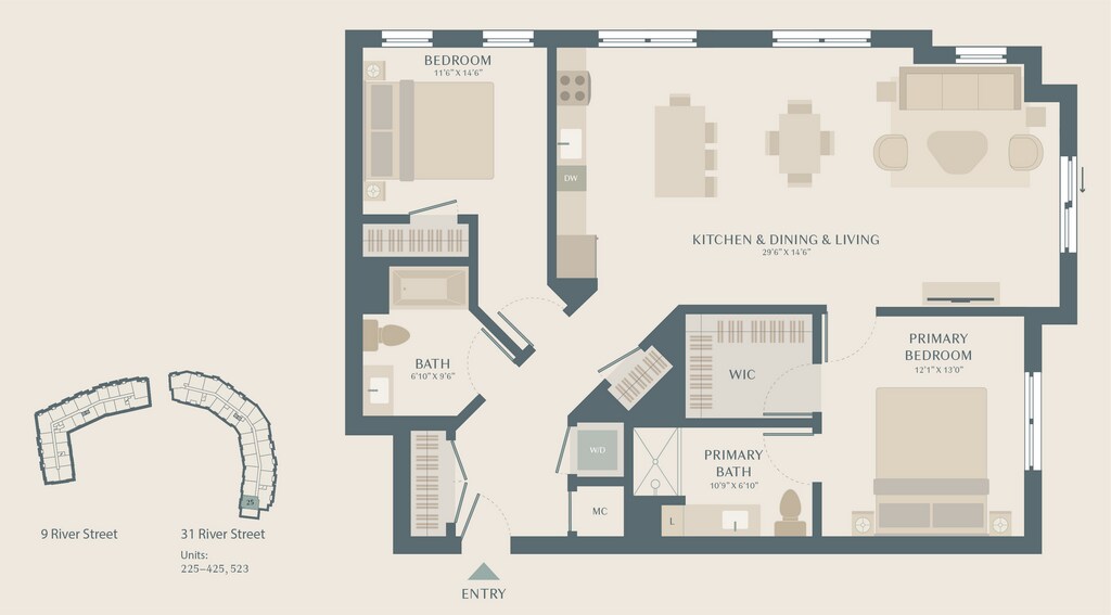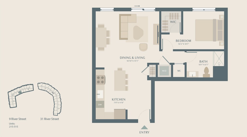 1 Dormitorio, 1 Baño, 790 pies²Disponible January 22, 2026Galería del Modelo