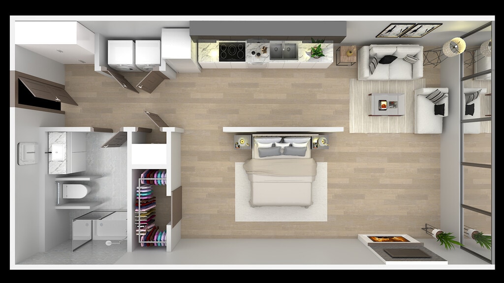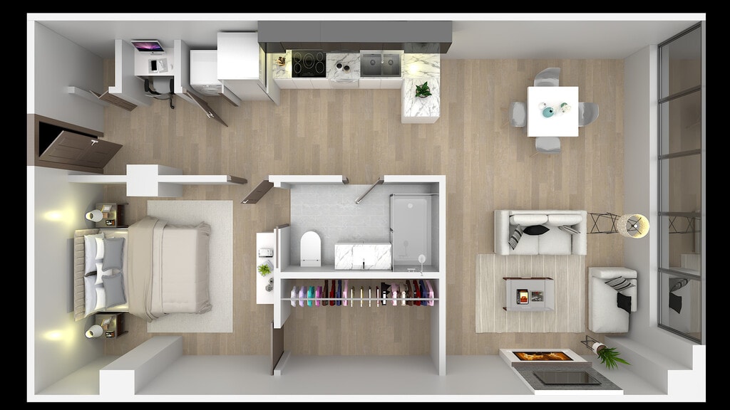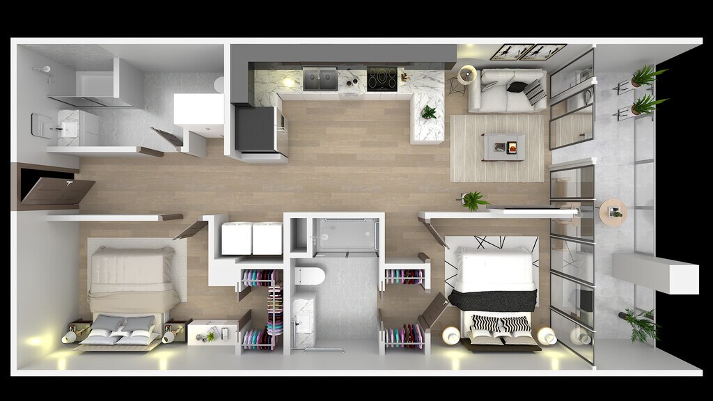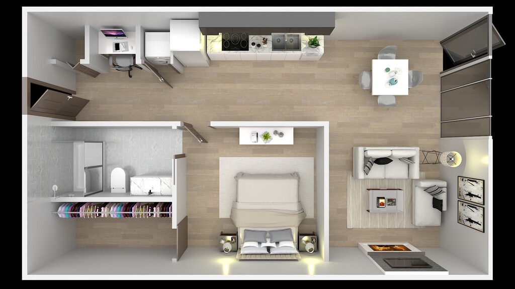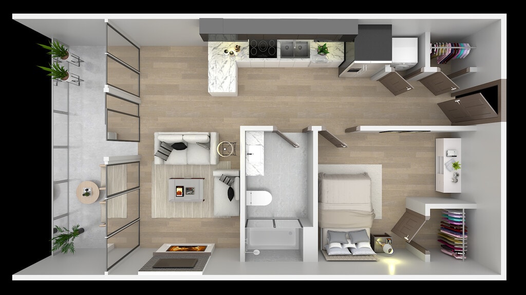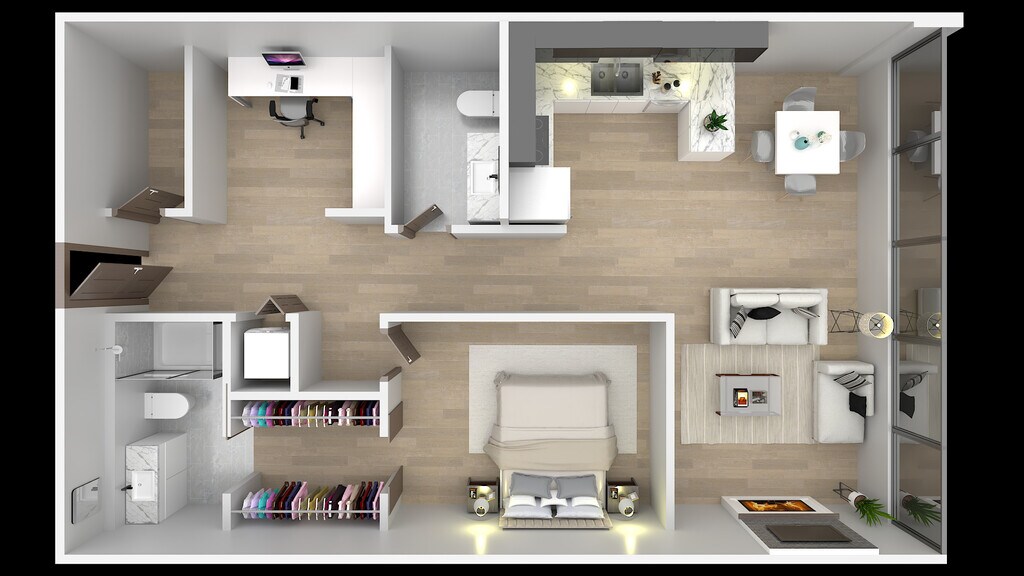 1 Dormitorio, 1 Baño, 813 pies²Disponible AhoraGalería del Modelo