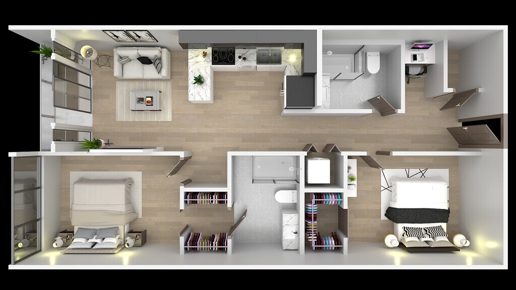 1 Dormitorio, 1 Baño, 822 pies²Disponible AhoraGalería del Modelo