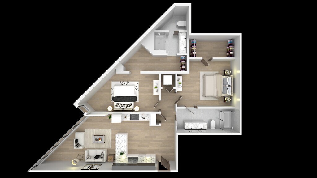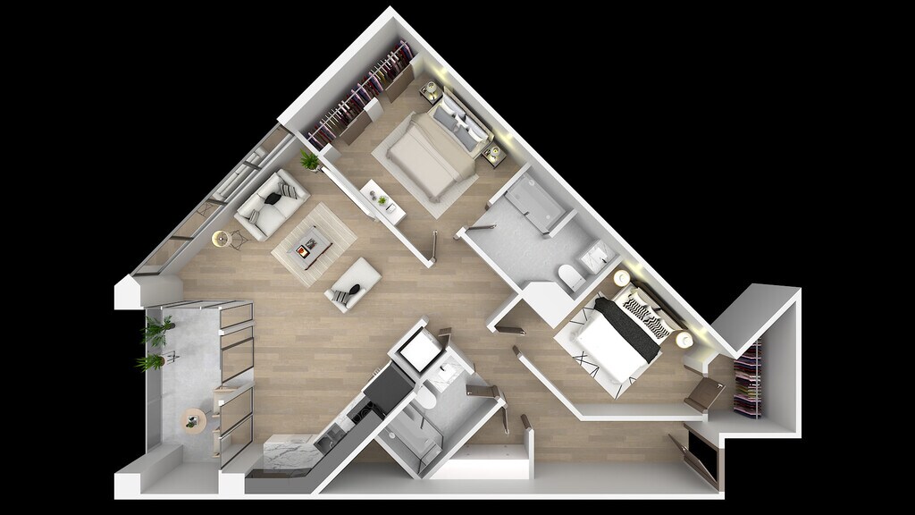 1 Dormitorio, 2 Baños, 986 pies²Disponible AhoraGalería del Modelo