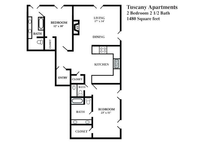 Llámenos hoy para conocer las opciones de precio de 1 dormitorios a 2 dormitorios en The Tuscany Apartments