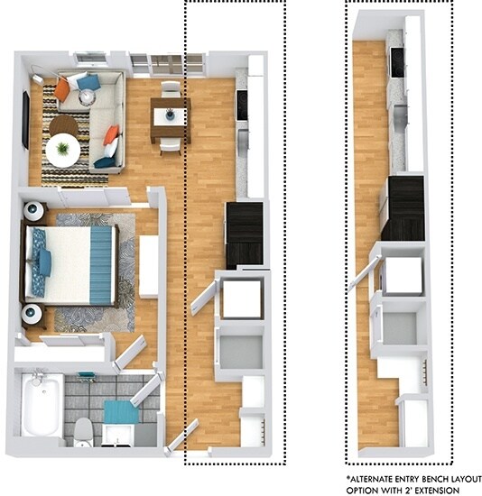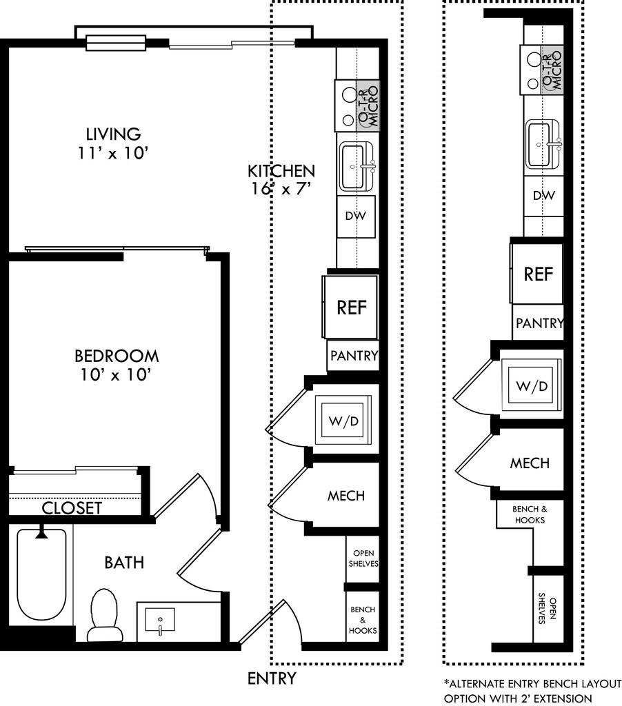 Modelo de apartamento: DavisLlame para PreciosEstudio, 1 Baño, 487 sq ftNo DisponibleDavis - Plano 1 Davis - Plano 2 1 Dormitorio