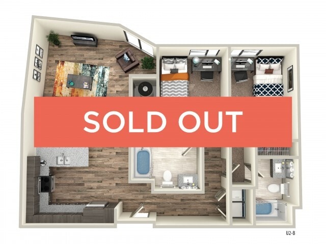 Modelo de apartamento: 2BR/2BA - 2D2 Dormitorios, 2 Baños, 824 sq ftNo Disponible![]()