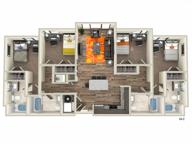 Modelo de apartamento: 4BR/4BA - 4E4 Dormitorios, 4 Baños, 1290 sq ftNo Disponible![]()