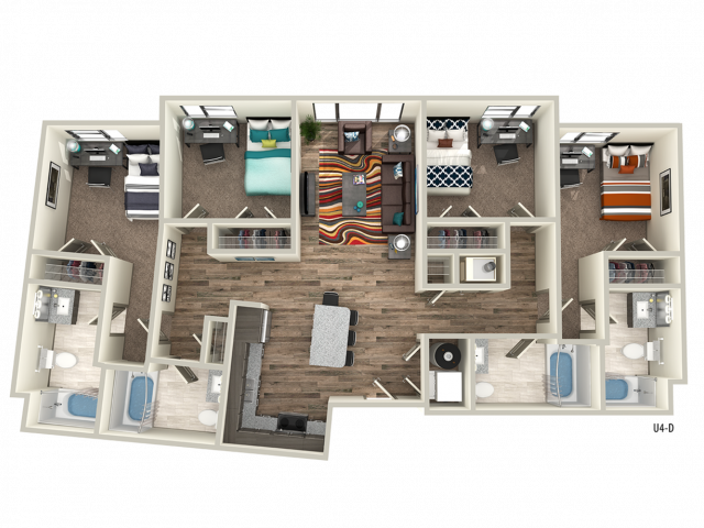 Modelo de apartamento: 4BR/4BA - 4B4 Dormitorios, 4 Baños, 1514 sq ftNo Disponible![]()