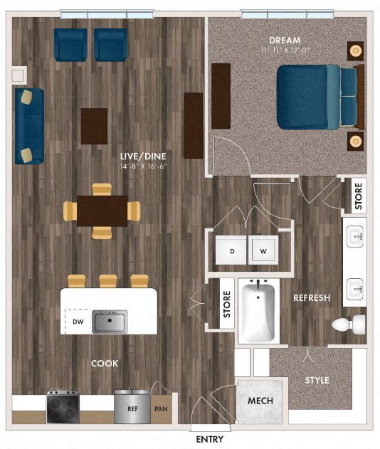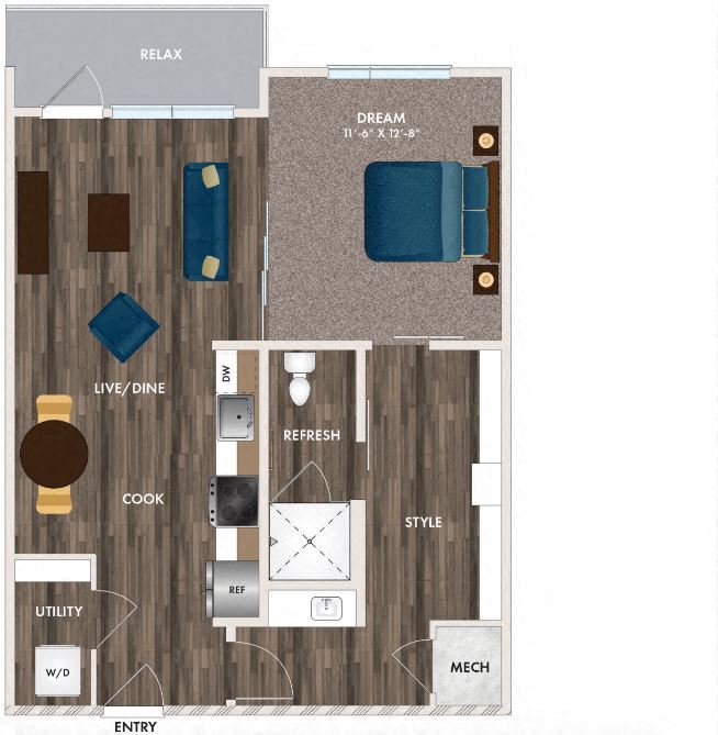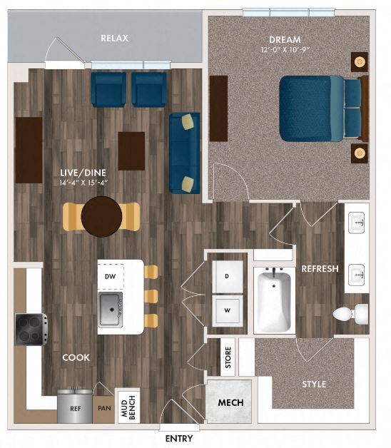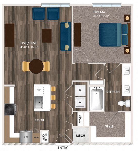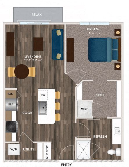 Estudio, 1 Baño, 599-646 pies²Disponible AhoraGalería del Modelo