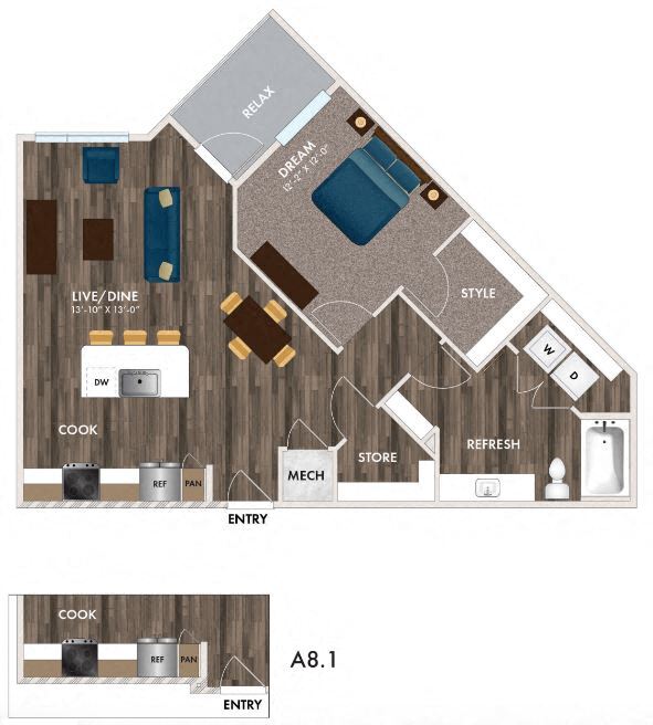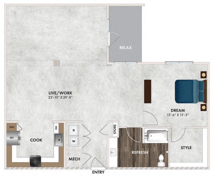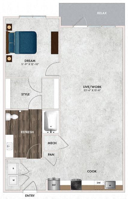 Estudio, 1 Baño, 840 pies²Disponible AhoraGalería del Modelo