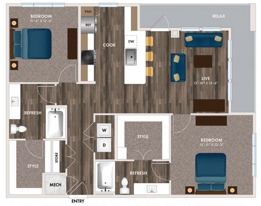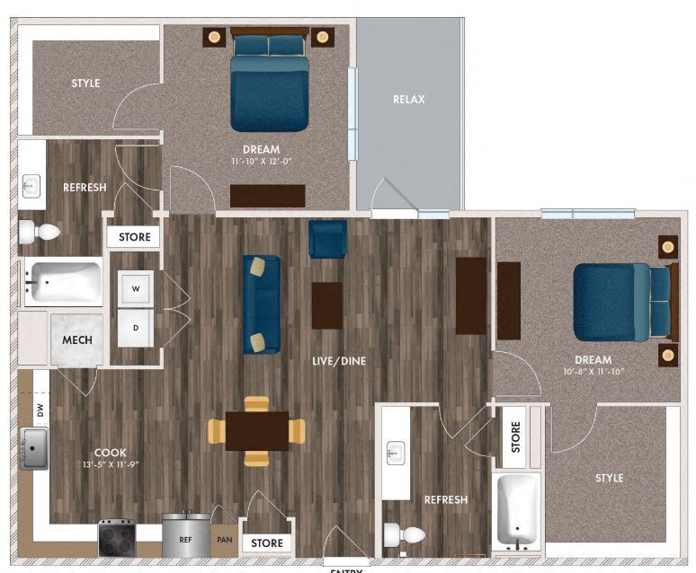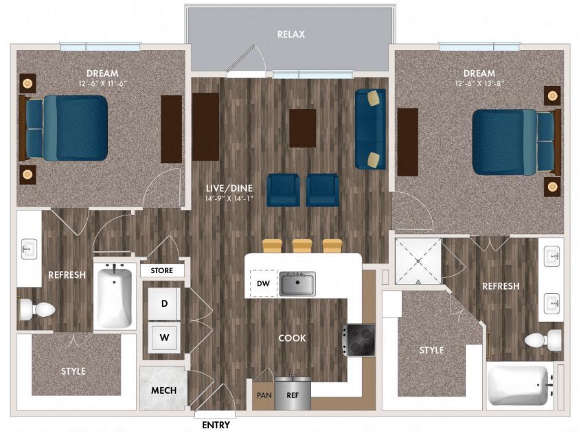 Modelo de apartamento: S3Llame para PreciosEstudio, 1 Baño, 901 sq ftNo Disponible![]()