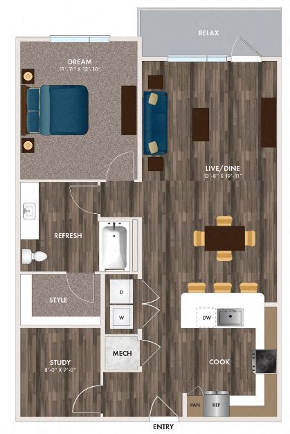Modelo de apartamento: S1$1,193Estudio, 1 Baño, 599-646 sq ftDisponible Ahora![]()