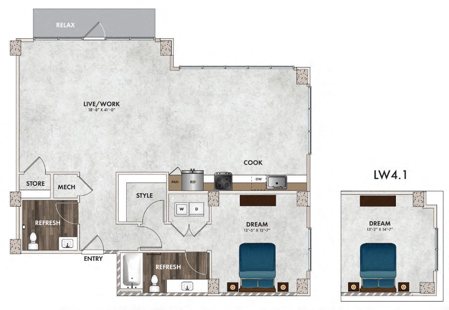LW 05 - Plano 1 Unidad de apartamento: 158Modelo de apartamento: LW 05$1,664Estudio, 1 Baño, 840 sq ftDisponible AhoraLW 01