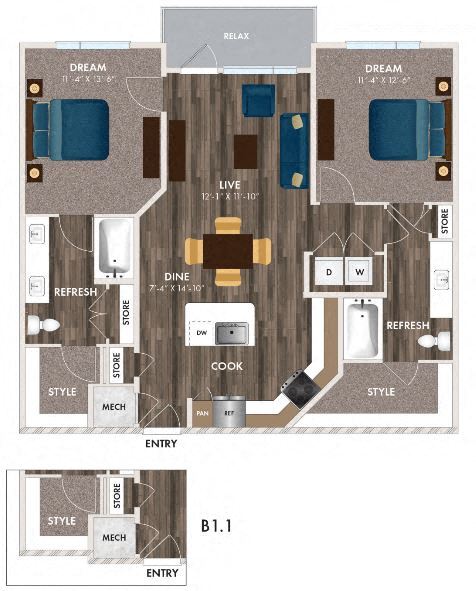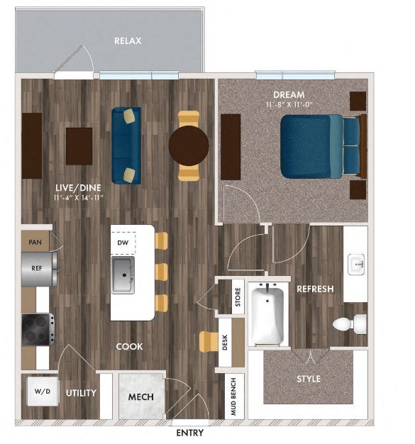 Estudio, 1 Baño, 650 pies²Disponible AhoraGalería del Modelo