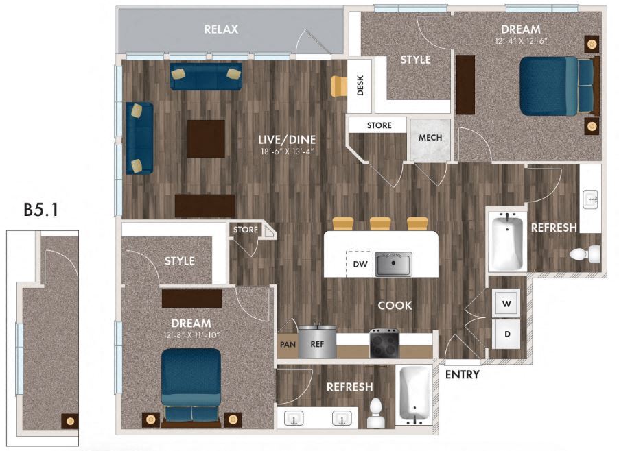 Modelo de apartamento: LW 05$1,664Estudio, 1 Baño, 840 sq ftDisponible Ahora![]()