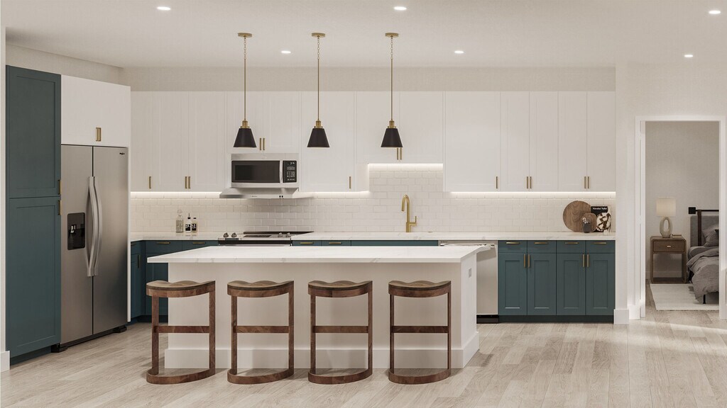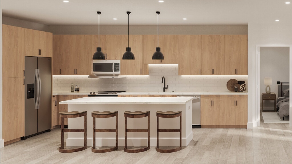 Upscale casual meets walkability in an energetic and emerging nexus for Fort Worth. As the Republic quickly rises in popularity, our amenities reflect its growing energy and appeal. Lounge in cabanas beside the resort style pool, take in skyline views from the Sky Lounge, or connect with neighbors in vibrant outdoor gathering spaces. Enjoy pickleball matches, game nights, and co working sessions in sleek lounges designed for productivity and play. Every detail captures modern Texas cool, offering a lifestyle as bold as the city itself. Inside your home, refined comfort takes center stage. Modern quartz countertops, soft close cabinetry, and stainless steel appliances elevate daily living. Beverage centers, smart thermostats, and keyless entry locks bring ease and convenience. Designer finish schemes and curated fixtures in black, gold, or chrome allow you to shape a space that feels uniquely yours. This is where timeless grit and modern elegance come together to define home.