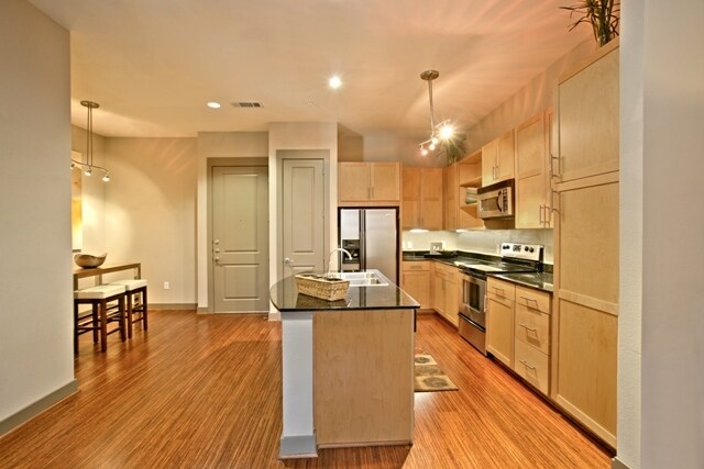 The Sawyer West Village Uptown es un lujoso complejo de apartamentos que se extiende en dos parcelas separadas, The Flats y The Lofts, y ofrece una combinación de lujo y emoción urbana. Vivirás en el centro de la zona residencial en el distrito de West Village, uno de los vecindarios más vibrantes de Dallas con acceso a más de 100 populares restaurantes, tiendas y opciones de entretenimiento. Después de que hayas disfrutado de la emoción de la ciudad, volverás a casa a tu oasis perfecto y privado, con todo lo que necesitas para relajarte y descansar. Disfrutarás de vivir en uno de los 27 planos de planta diferentes de casas de una y dos habitaciones de The Sawyer que van desde 593 a 1,405 pies cuadrados. Con nuestras varias opciones de diseño y diseños lujosos, hay algo para todos los gustos, y cada espacio ofrece una experiencia de vida personalizada y de lujo. Cada apartamento incluye una lavadora y secadora, pisos de madera noble, armarios para ropa blanca, persianas de madera de imitación de dos pulgadas y cocinas con un paquete completo de electrodomésticos. Las características adicionales, como encimeras de cuarzo, placa para salpicaduras de azulejos, fregaderos de montaje inferior de una sola cuenca, accesorios contemporáneos de alta gama, techos de diez pies de altura y una bañera amplia elevan aún más tu espacio. Nuestro complejo también ofrece comodidades estilo centro turístico que se adaptan a tu rutina diaria y ofrecen una gran variedad de actividades justo afuera de tu puerta. Comienza bien cada día tomando una deliciosa bebida en nuestra barra de café/té gratuito. Realiza una excelente rutina de ejercicios en nuestro gimnasio de última generación abierto las 24 horas con máquinas de pesas y equipo cardiovascular. O disfruta de relajarte junto a nuestra piscina al aire libre y cocinar una deliciosa comida de barbacoa en nuestras estaciones de parrillas adyacentes. Ambos edificios también admiten mascotas y ofrecen garajes de estacionamiento, casilleros Luxer One Package y acceso controlado. The Sawyer está ubicado en 3636 McKinney Avenue Dallas, TX 75204, justo a la salida de la I-75, lo que proporciona un viaje diario de menos de cinco minutos al centro de Dallas. Los profesionales apreciarán vivir a menos de nueve millas de distancia de los ocho principales centros de empleo de la zona, que incluyen el Telecom Corridor, Preston Center y el Platinum Corridor. Además, estarás a menos de cuatro millas de distancia de doce lugares de entretenimiento de primera categoría, que incluyen el distrito de artes de Dallas, Victory Park y The Shops at Park Lane. Estas áreas son aún más accesibles con conectividad conveniente al transporte público, incluido el tren DART y el histórico tranvía de McKinney Avenue. El vecindario de Uptown también ofrece una calificación de Walk Score de 93, y las atracciones panorámicas como Katy Trail, Oak Lawn Park y Turtle Creek están a menos de diez minutos a pie. The Sawyer ofrece excelentes comodidades, apartamentos de lujo y un entorno espectacular cerca de todas las mejores atracciones de Dallas. Si deseas disfrutar de lo que es la vida en The Sawyer, entonces ponte en contacto con nuestro amable y experto personal hoy mismo. Estaremos encantados de programar un recorrido personal y responder a todas tus preguntas. ¡Estamos ansiosos por darte la bienvenida a casa en The Sawyer West Village Uptown en Dallas, TX! LEE MÁS