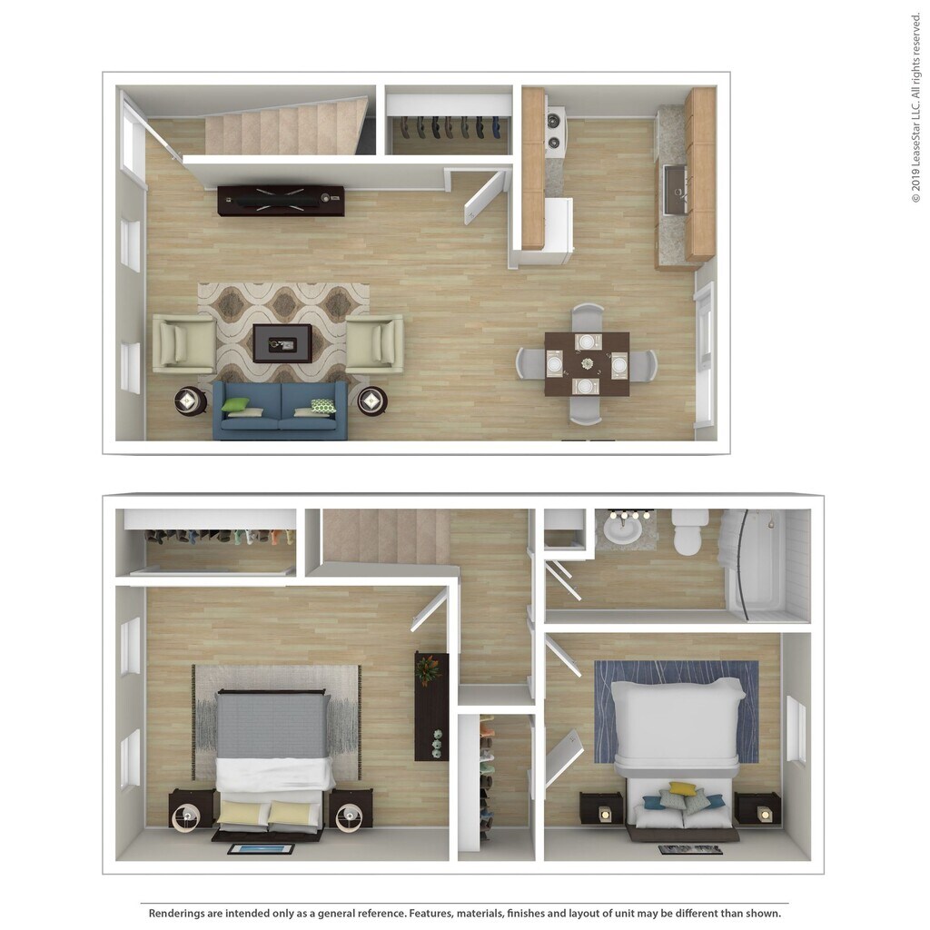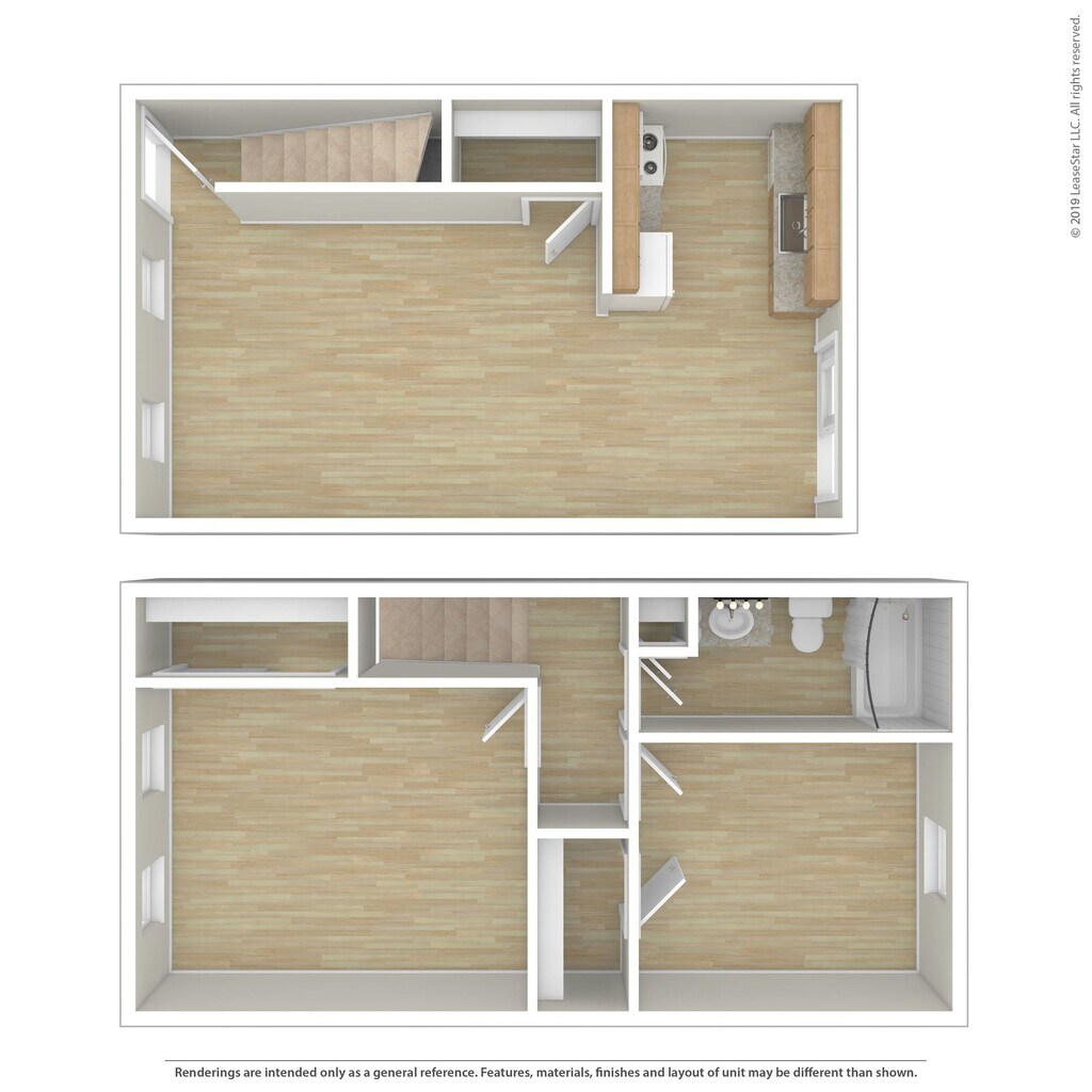 2 Dormitorios, 1 Baño, 1020 pies²Galería del Modelo