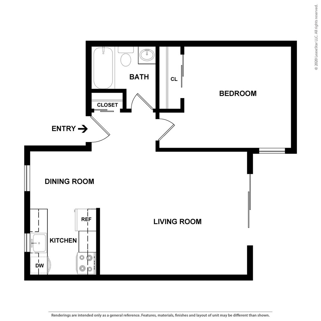 1 Dormitorio, 1 Baño, 700 pies²Disponible AhoraGalería del Modelo