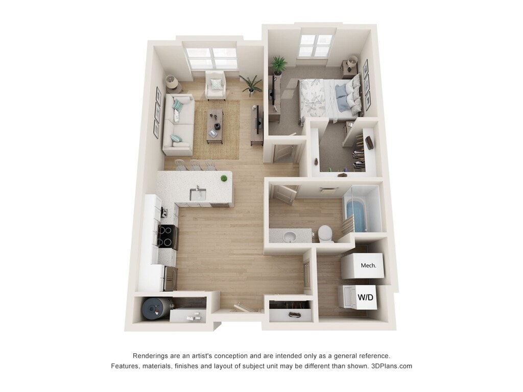 Estudio, 1 Baño, 517 pies²Disponible AhoraGalería del Modelo