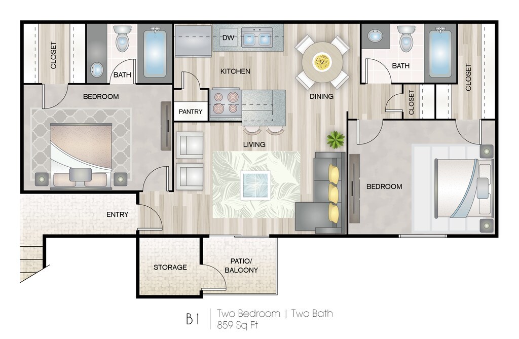 2 Dormitorios, 2 Baños, 859 pies²Disponible AhoraDetalles de Diponibilidad
