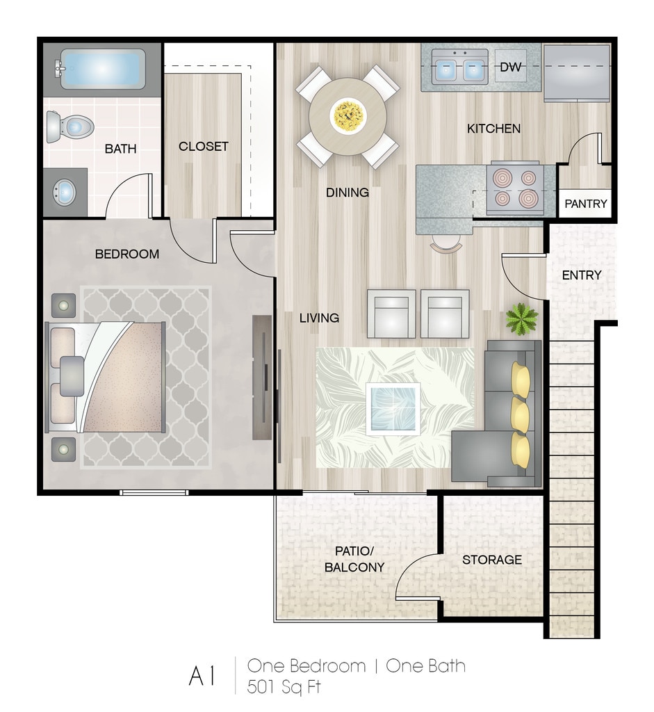 1 Dormitorio, 1 Baño, 501 pies²Disponible AhoraDetalles de Diponibilidad
