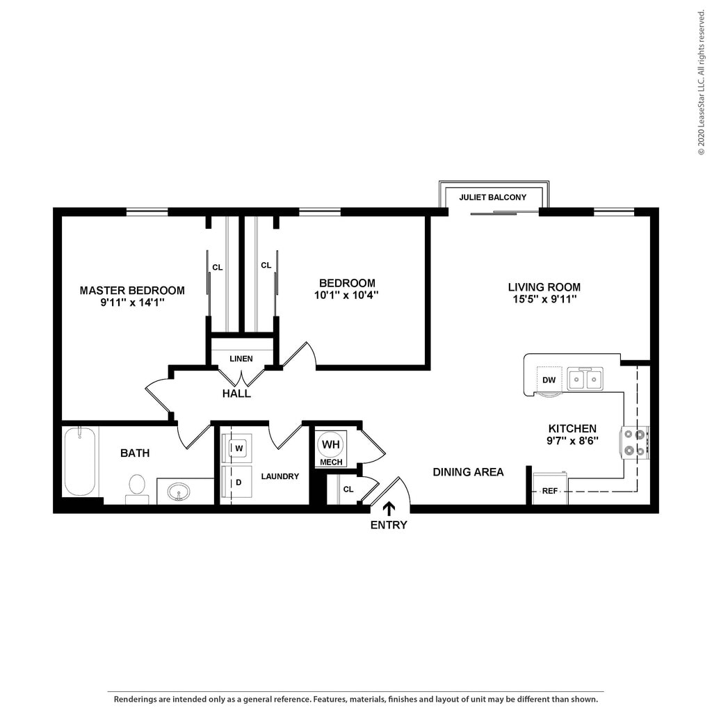 Embassy - Plano 4 Unidad de apartamento: 6-5499-103Modelo de apartamento: EmbassyDesde $1,6562 Dormitorios, 2 Baños, 1157 sq ftDisponible AhoraWells
