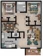Modelo de apartamento: 1 BedroomDesde $8351 Dormitorio, 1 Baño, 750 sq ftDisponible Ahora1 Bedroom - Plano 1 2 Dormitorios