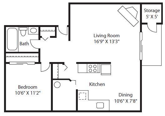 1 Dormitorio, 1 Baño, 740 pies²Disponible Nov 12Galería del Modelo