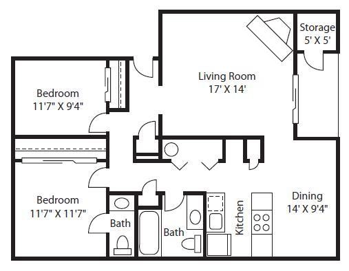 Modelo de apartamento: 3 Bed 2 Bath3 Dormitorios, 2 Baños, 1240 sq ftNo Disponible3 Bed 2 Bath - Plano 1