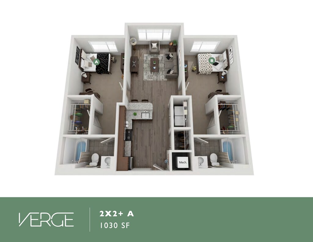Modelo de apartamento: 2x2 +$1,4692 Dormitorios, 2 Baños, 995-1030 sq ftDisponible August 20, 20262x2 + - Plano 1 2x2 + - Plano 2 Unidad de apartamento: PrivateModelo de apartamento: 2x2 +$1,4692 Dormitorios, 2 Baños, 995-1030 sq ftDisponible August 20, 20263 Dormitorios