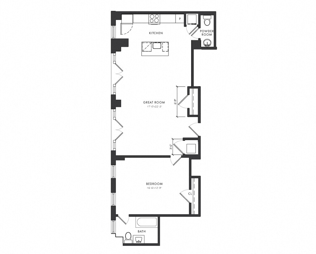Modelo de apartamento: Residence A1- 1 BedroomLlame para Precios1 Dormitorio, 1 Baño, 762 sq ftNo Disponible![]()
