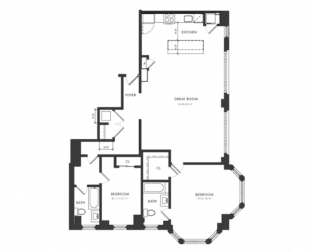 Modelo de apartamento: Residence C - 1 BedroomDesde $2,5411 Dormitorio, 1 Baño, 914-1018 sq ftDisponible Ahora![]()